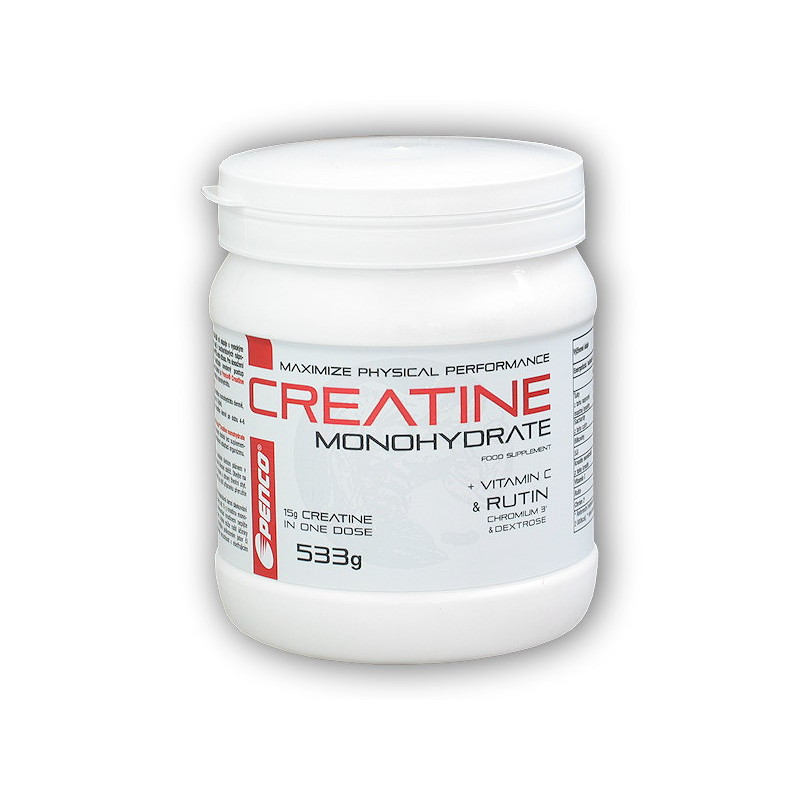 Compoziţie: Creatina monohidrat (93,8 g/100g), glucoza (5,6 g/100g), vitamina C (0,38 g/100g), rutina (0,13 g/100g), clorura de crom