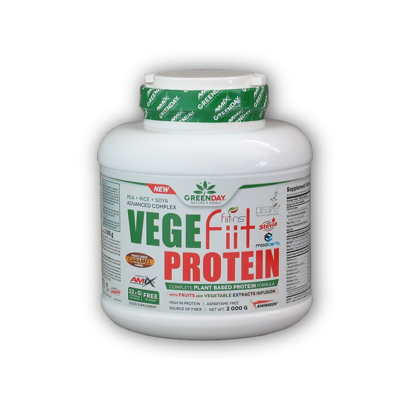 Compoziţie: Amestec de proteine Vegefiit 87% (izolat proteic de mazăre Pisane®, proteine de orez, proteine din soia); pudră de cacao, ModCarb™ (tărâțe de ovăz fără gluten, quinoa, amarant, hrișcă, mei), extracte și concentrate de fructe și legume Fiit-ns® (extract de ceai verde, extract de guarana, extract de grozn roșu și alb, extract de grapefruit, extract de morcov negru, nicotinamidă), aromă, amestec patentat de protează AminoGen® (maltodextrină, proteaze), îndulcitori: glicozide steviolice, sucraloză și acesulfam-K.