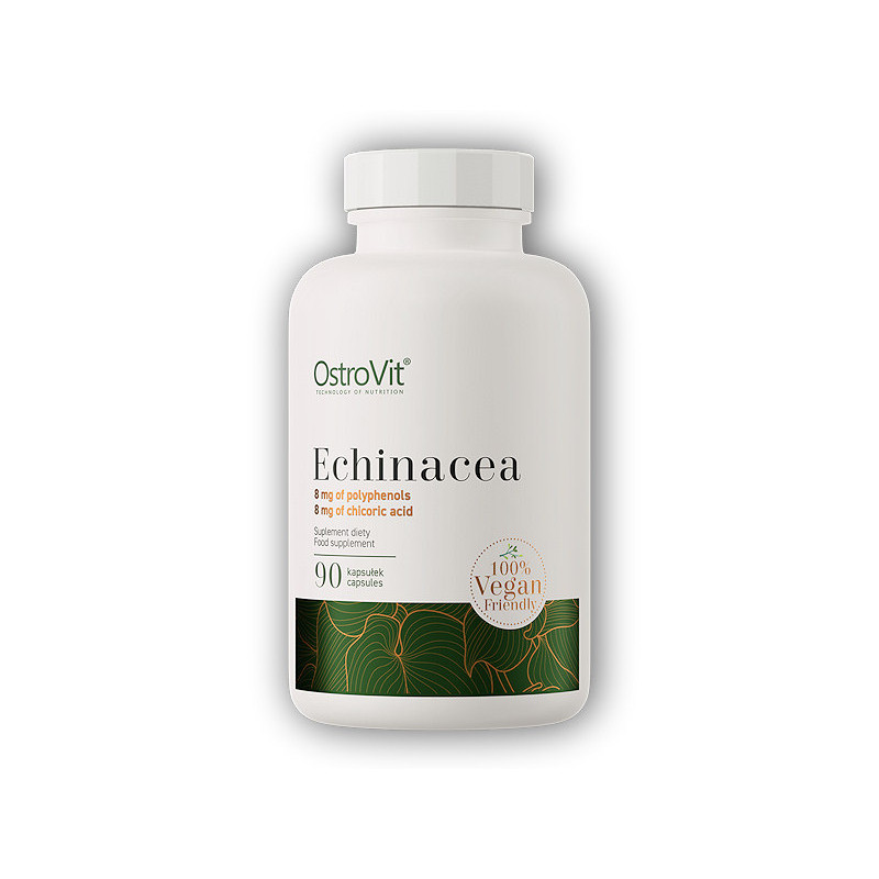 OstroVit Echinacea VEGE este un supliment alimentar de înaltă calitate care conține extract de coneflower violet standardizat la 4% polifenoli și extract de coneflower violet standardizat la 4% acid de cicoare. Este un preparat vegan, disponibil sub formă de capsule ușor de înghițit, creat pentru persoanele care doresc să-și completeze dieta cu ingrediente valoroase.